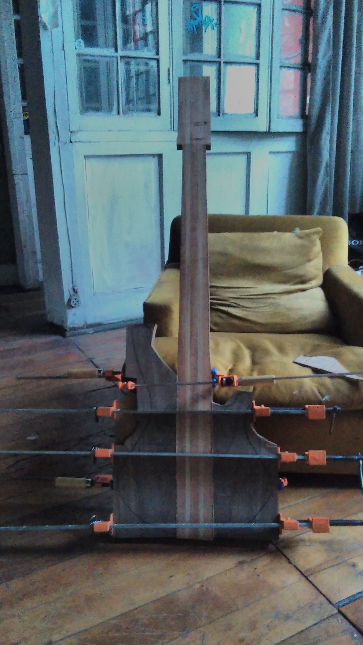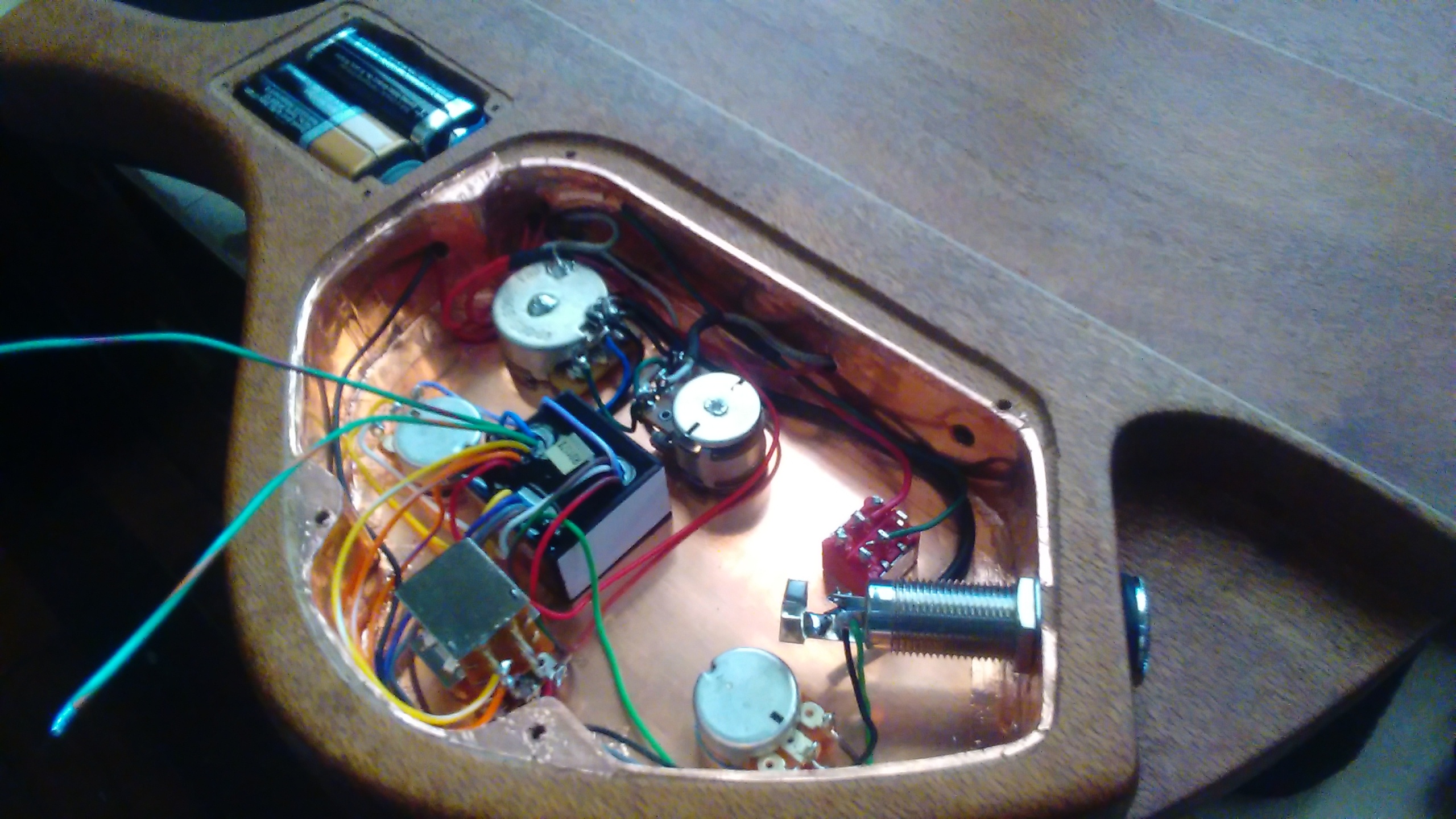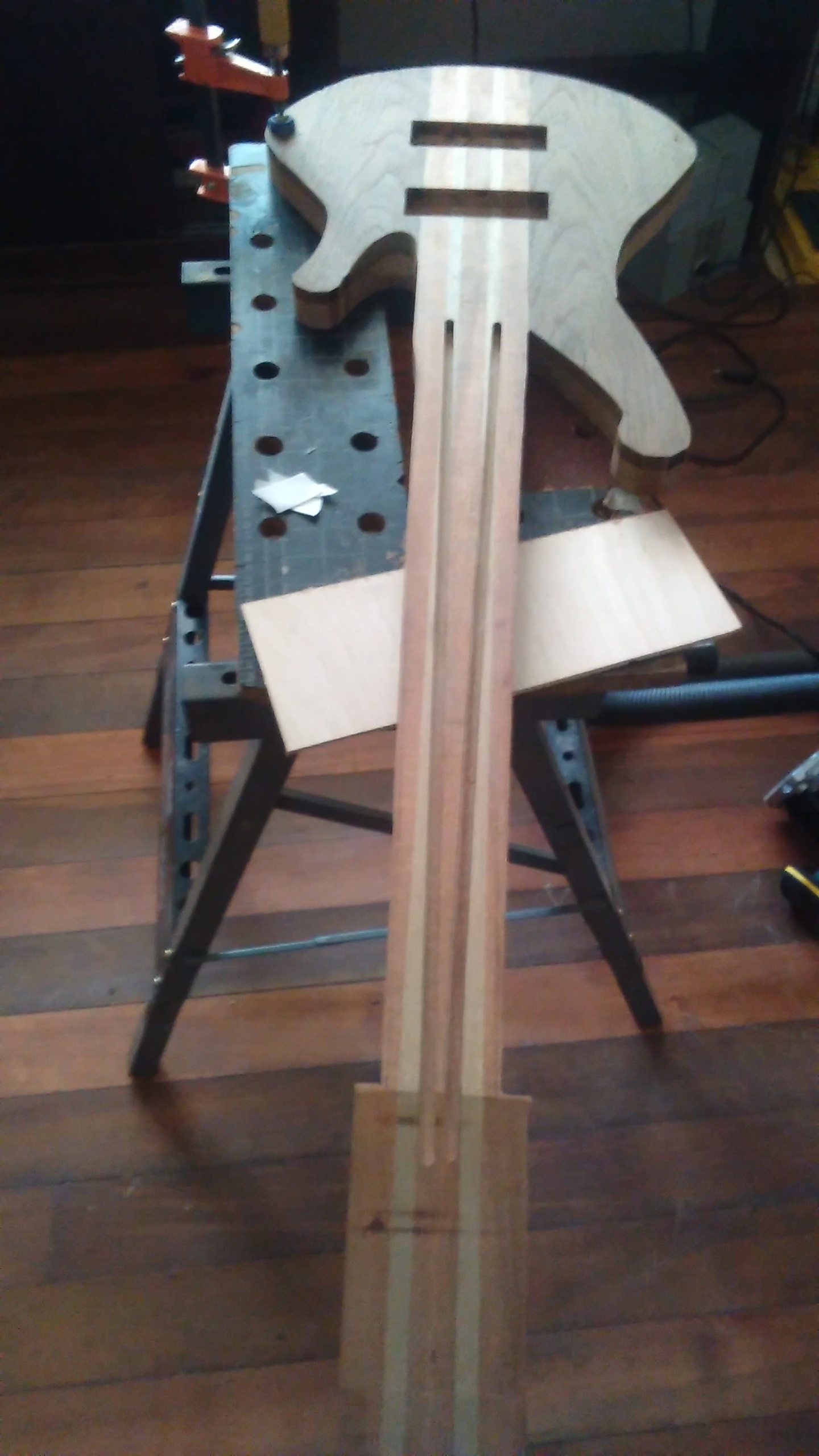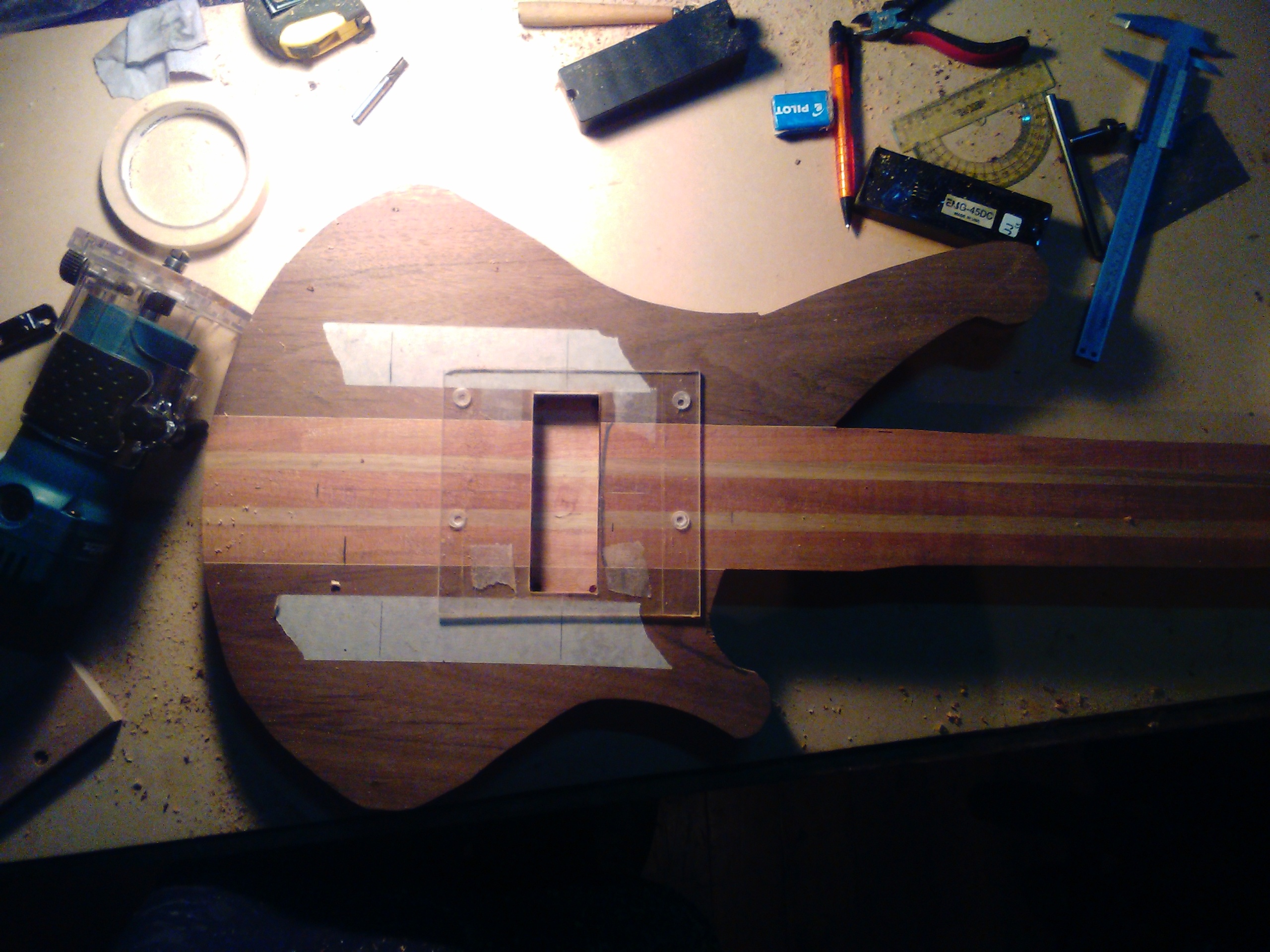 Se construyó entre el 2016 y principios del 2017, lo diseñamos pensando desde el comienzo que iría con todas las opciones que pudiera en ese momento, era la primera vez que armaba un instrumento con mástil a través del cuerpo y el hecho de incluir leds en el diapasón fue algo que tampoco había hecho antes y todo funcionó bien.