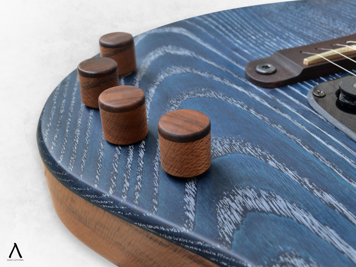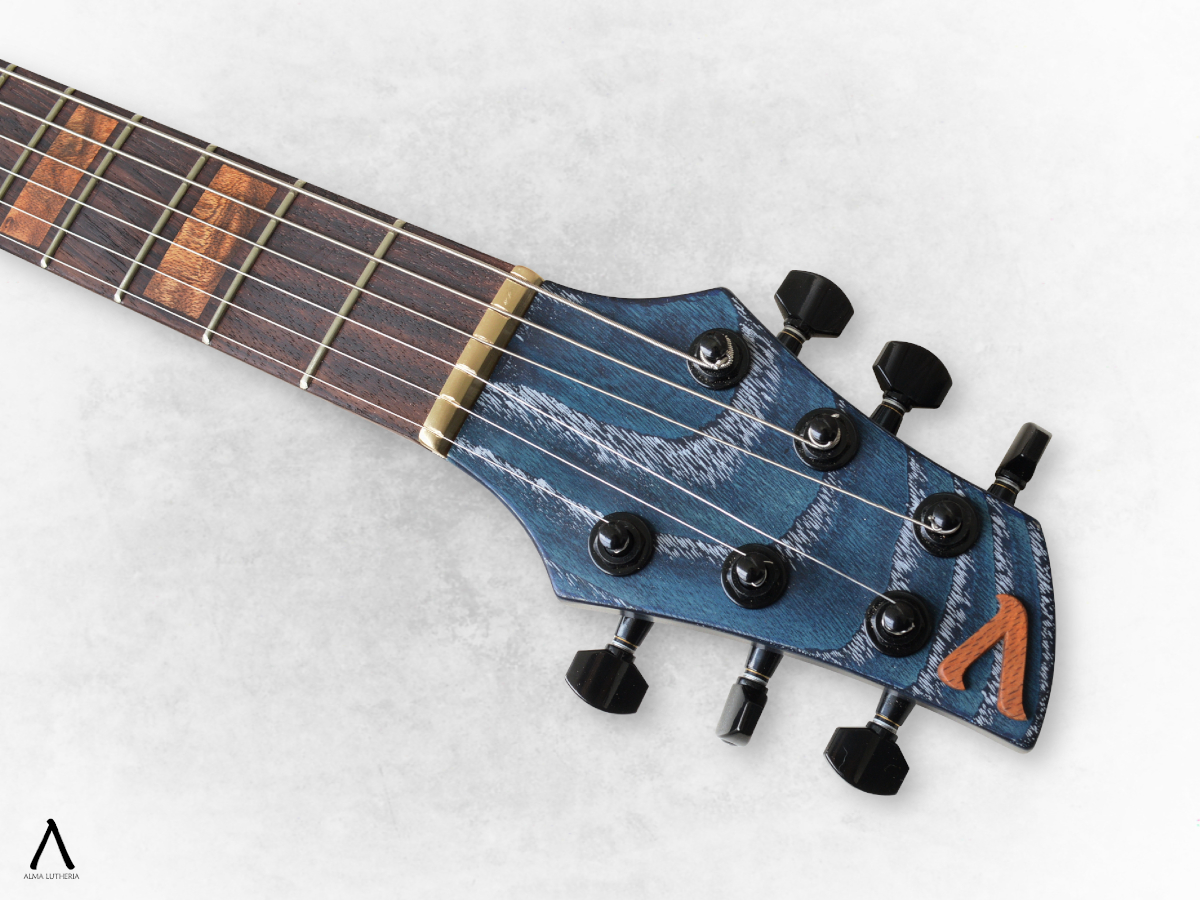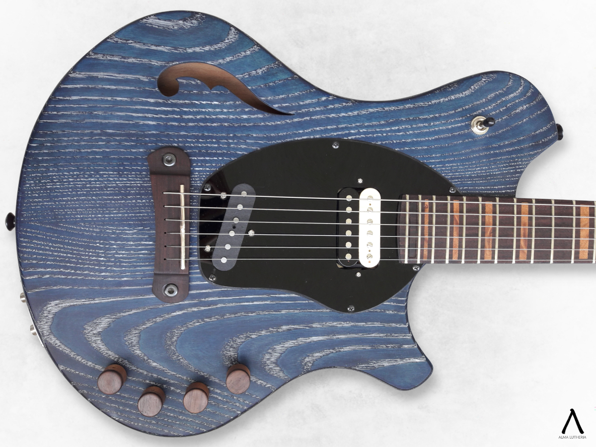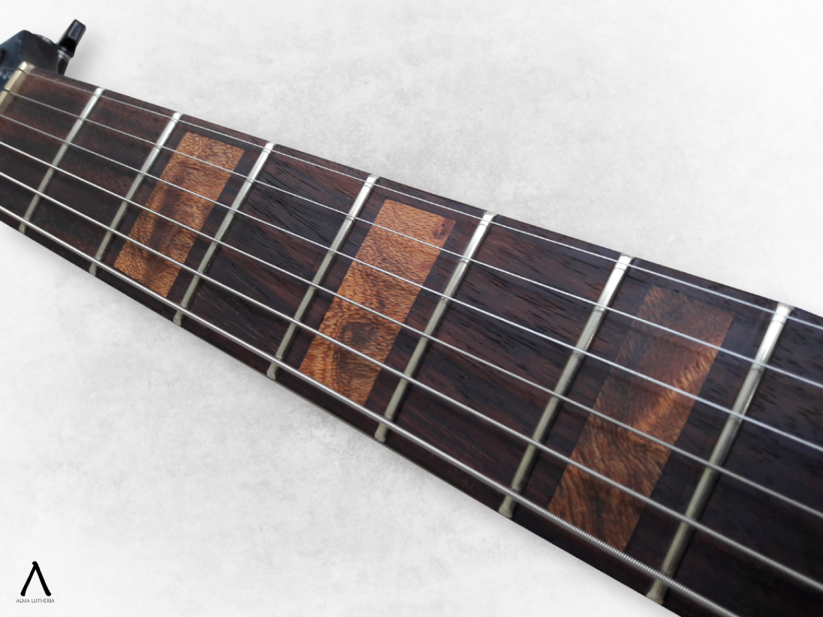 La inquietud que dio origen a este proyecto fue que en ese momento Seba estaba intentando incluir más la guitarra eléctrica en su repertorio, pero al estar más acostumbrado a la acústica le incomodaba la separación de cuerdas para su forma de tocar por lo que no estaba conforme con el resultado técnico ni sonoro que estaba logrando. Entonces partimos pensando un instrumento que le acomodara en ambas manos, agrandando la separación de cuerdas, pensando en que las cápsulas no estorben al tocar y sean cuidadosamente seleccionadas. En ese punto es cuando mi fascinación por complicarme la vida ante la más mínima oportunidad aparece y le propongo acercarse aun más a la acústica añadiéndole un piezo que involucraba un circuito preamp y puente fabricados a medida, considerando que de todas maneras íbamos a tener que trabajar con una separación de cuerdas no estándar y eso significa buscar un puente poco común.